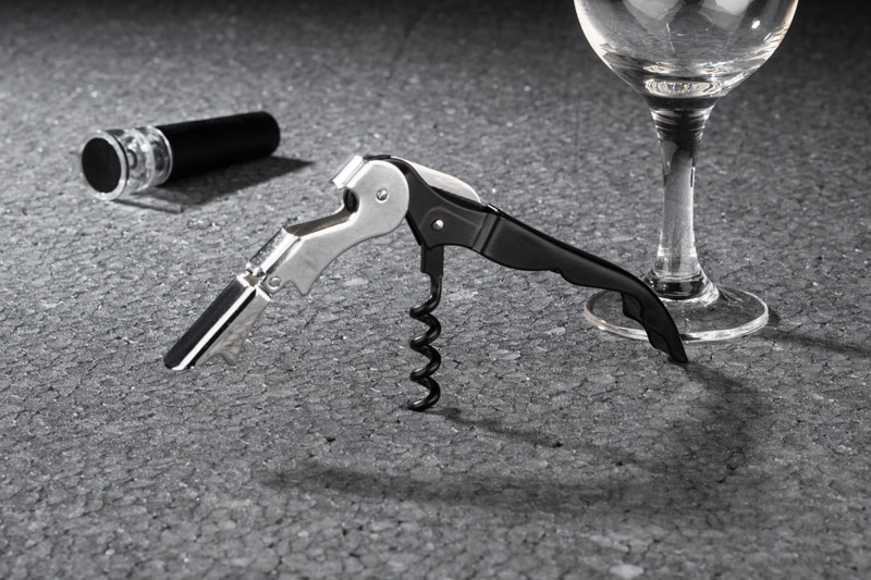 Dwuelementowy, elegancki zestaw do wina zawiera próżniowy korek oraz korkociąg. Próżniowy korek z pompką zasysającą powietrze z butelki pozwala na dłuższe przechowywanie otwartego wina bez utraty cennych aromatów. Zestaw jest zapakowany w eleganckie czarne pudełko.