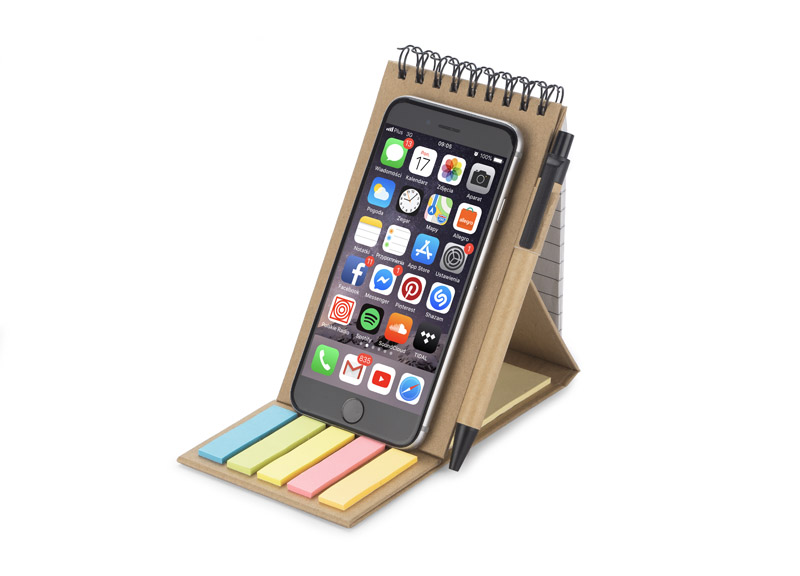 Zestaw ZENTO to przydatny i praktyczny gadżet. Niewielki rozmiar ułatwia przechowywanie i zapakowanie produktu na przykład do torebki, a dodatkowo można go wykorzystać, jako przenośny stojak do telefonu. W skład zestawu wchodzi: notesik na spirali – 70 kartek w linie, 25 sztuk żółtych karteczek samoprzylepnych, kolorowe karteczki samoprzylepne – 25 sztuk/kolor oraz długopis z czarnym wkładem.