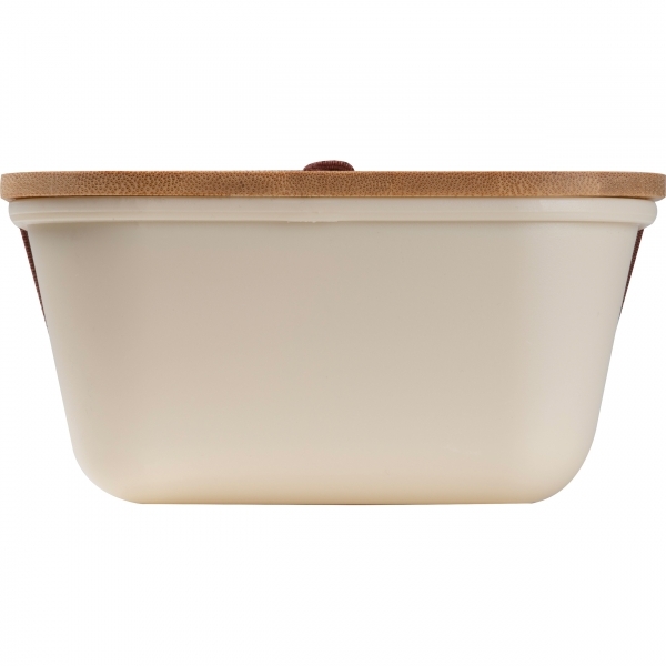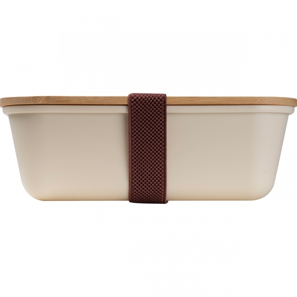 Zestaw składający się z praktycznego pojemnika na lunch (1000 ml), wykonanego z materiału PP, z bambusowym wieczkiem i gumką, która utrzymuje je na miejscu oraz butelki termicznej (500 ml).