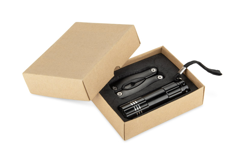 Zestaw narzędzi HEXAL to praktyczny komplet składający się z latarki i multitoola, idealny w podróży, w pracy czy w domu. Multitool wyposażony jest w funkcjonalne narzędzia: kombinerki, pilnik do drewna i metalu, otwieracz do butelek, piłę, otwieracz do piwa, nóż oraz śrubokręt krzyżakowy. Latarka stanowi przydatne uzupełnienie zestawu, zwiększając jego uniwersalność. Całość zapakowana jest w pudełko, co czyni HEXAL również atrakcyjnym pomysłem na praktyczny upominek reklamowy.