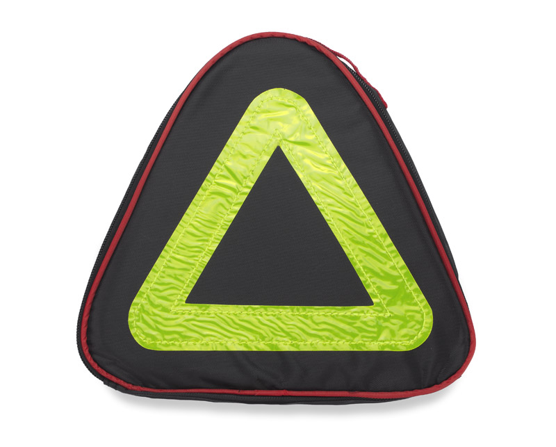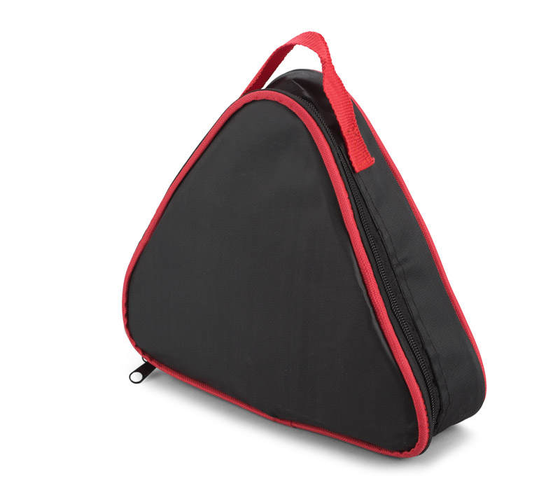 Zestaw narzędzi samochodowych umieszczony w torbie z poliestru, która dzięki swojemu kształtowi może zostać wykorzystana jako trójkąt ostrzegawczy. Zestaw zawiera: kable do ładowania akumulatora, przyrząd do pomiaru ciśnienia opon, komplet śrubokrętów i nasadek kluczy, latarkę dynamo, rękawiczki ochronne, nożyk oraz ponczo przeciwdeszczowe. Logo naniesiemy metodą sitodruku.