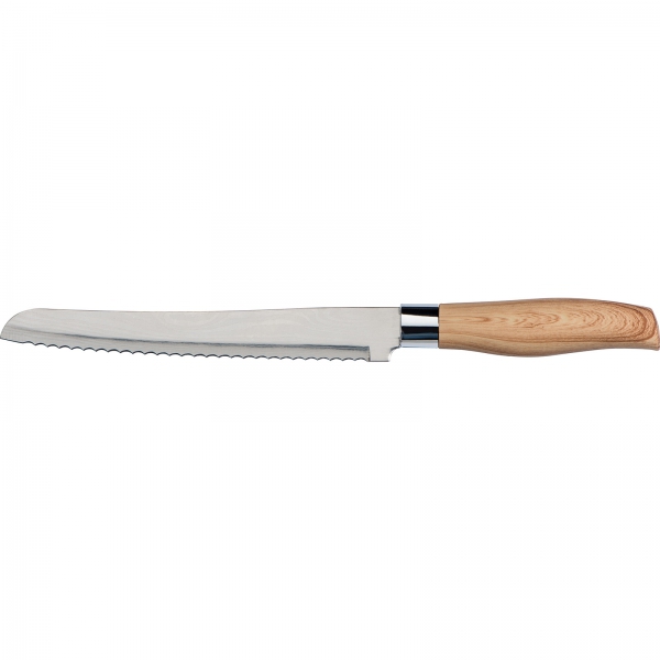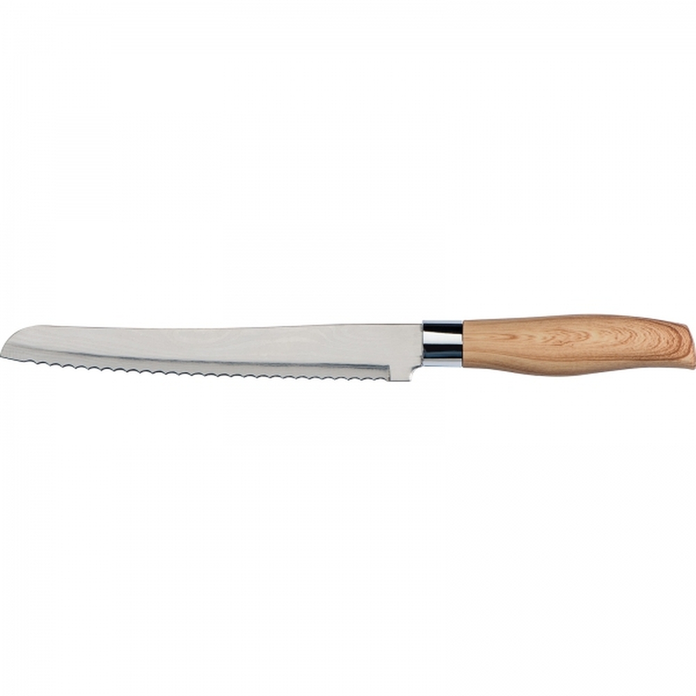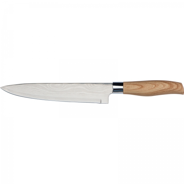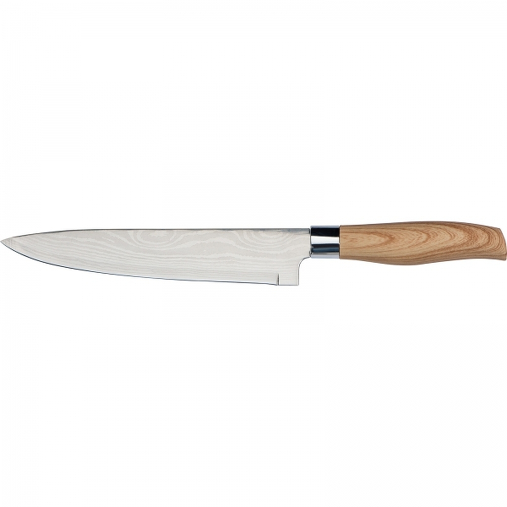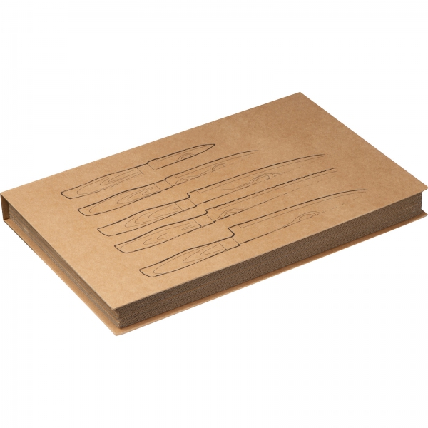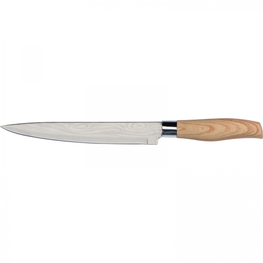 Zestaw 5 noży kuchennych w różnych rozmiarach. Noże posiadają ostrze ze stali nierdzewnej i antypoślizgową rękojeść z tworzywa imitującego drewno.