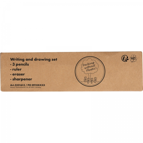 Zestaw piśmienny 6w1 to funkcjonalny komplet wykonany z wysokiej jakości drewna, który łączy w sobie trzy ołówki o zróżnicowanej twardości, precyzyjną gumkę do ścierania, praktyczną linijkę oraz wygodną temperówkę. Dzięki temu zestawowi z łatwością dopasujesz narzędzia do różnych zadań – od rysowania, przez pisanie, po precyzyjne mierzenie. Ekologiczne materiały, takie jak drewno i kartonowe opakowanie z okienkiem, podkreślają dbałość o środowisko, jednocześnie zapewniając trwałość i estetykę produktu. Kompaktowe, gotowe do wręczenia opakowanie sprawia, że zestaw idealnie sprawdzi się zarówno w domu, szkole, jak i w biurze, oferując wygodę i niezawodność na co dzień.