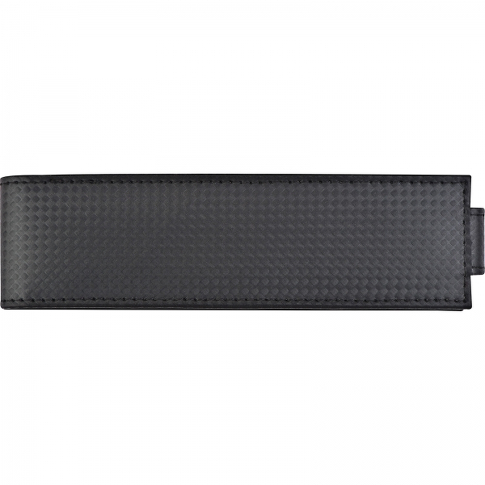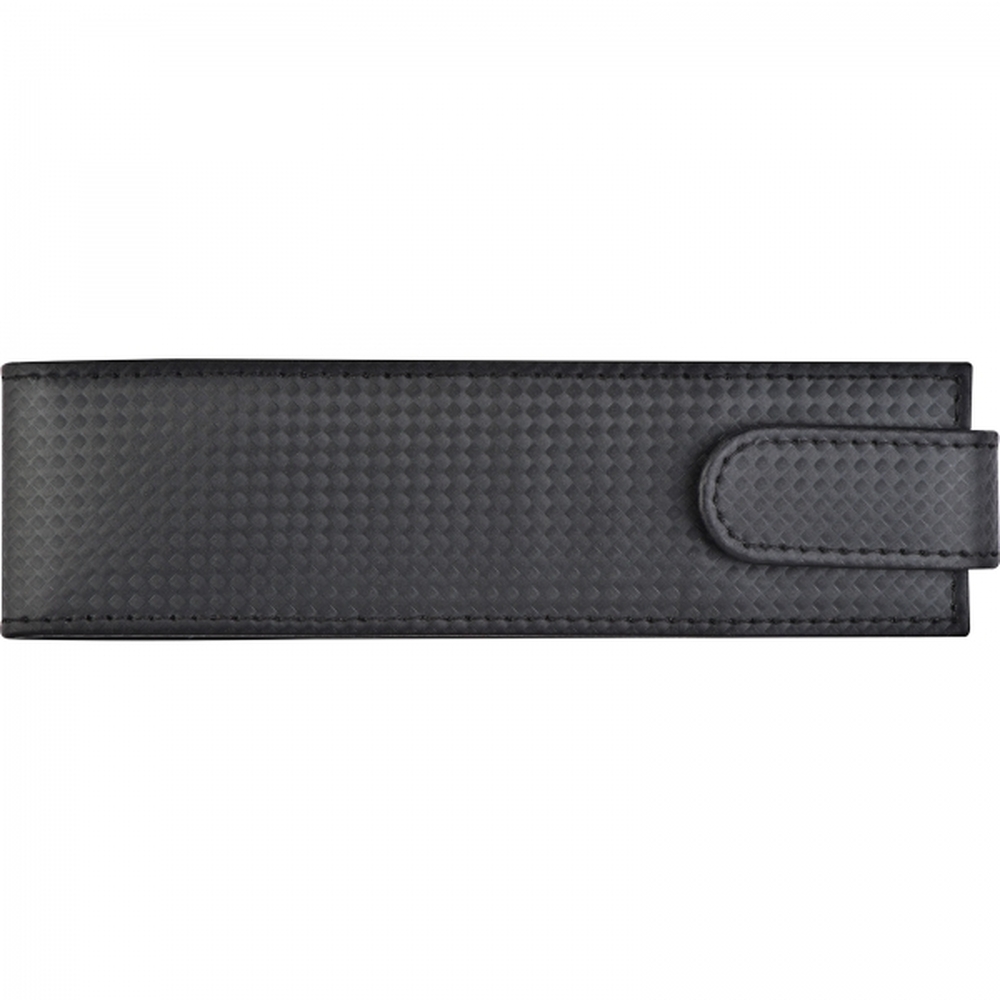Metalowy zestaw piśmienniczy składający się z długopisu piszącego na niebiesko oraz ołówka automatycznego. Artykuły piśmienne umieszczone w etui zapinanym na zatrzask.