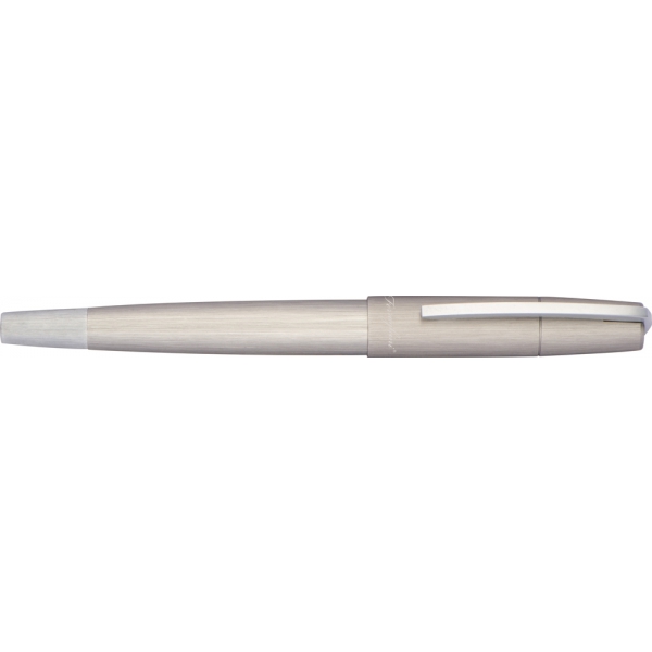 Zestaw piśmienny Ferraghini to połączenie stylu i funkcjonalności, idealne zarówno na luksusowy prezent biznesowy, jak i elegancki upominek dla kobiet. Wykonany z matowego, szczotkowanego metalu, długopis z przekręcanym mechanizmem oraz pióro kulkowe zapewniają wyjątkową trwałość i komfort pisania. Oba narzędzia wyposażono w precyzyjne wkłady koloru niebieskiego – długopis pisze linią o grubości około 1 mm, dostosowując ją do nacisku, natomiast pióro kulkowe oferuje delikatniejszą linię o szerokości około 0,7 mm. Całość zapakowana jest w nowoczesne, czarne etui wykonane z kraftowego papieru, które łączy oryginalny design z wysoką jakością wykonania.
