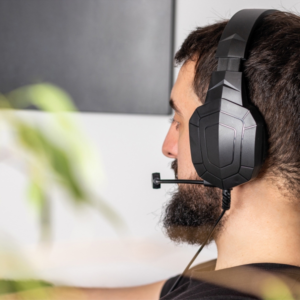 Zestaw słuchawkowy wykonany z trwałego plastiku to idealne połączenie funkcjonalności i wygody użytkowania. Wyposażony w precyzyjnie umieszczony mikrofon, gwarantuje wyraźną komunikację podczas wideokonferencji, rozmów czy rozgrywek online, eliminując zakłócenia dźwięku. Zaawansowana funkcja redukcji szumów skutecznie tłumi hałasy otoczenia, pozwalając skupić się na rozmowie lub muzyce nawet w głośnym środowisku. Regulacja głośności umożliwia szybkie i łatwe dostosowanie dźwięku do indywidualnych potrzeb bez przerywania aktywności.
