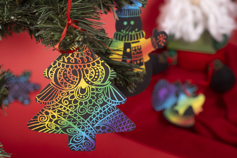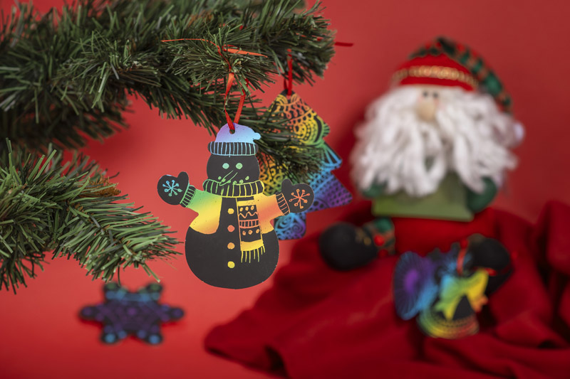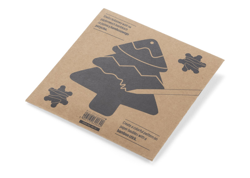 Świąteczny zestaw zawieszek na choinkę. Za pomocą bambusowego patyczka w prosty i przyjemny sposób można zaprojektować swoje wyjątkowe i unikatowe bombki. W zestawie są 4 kształty: dzwoneczek, gwiazda, choinka, bałwan. Wykonane z papieru. Zapakowane w brązową kopertę.
