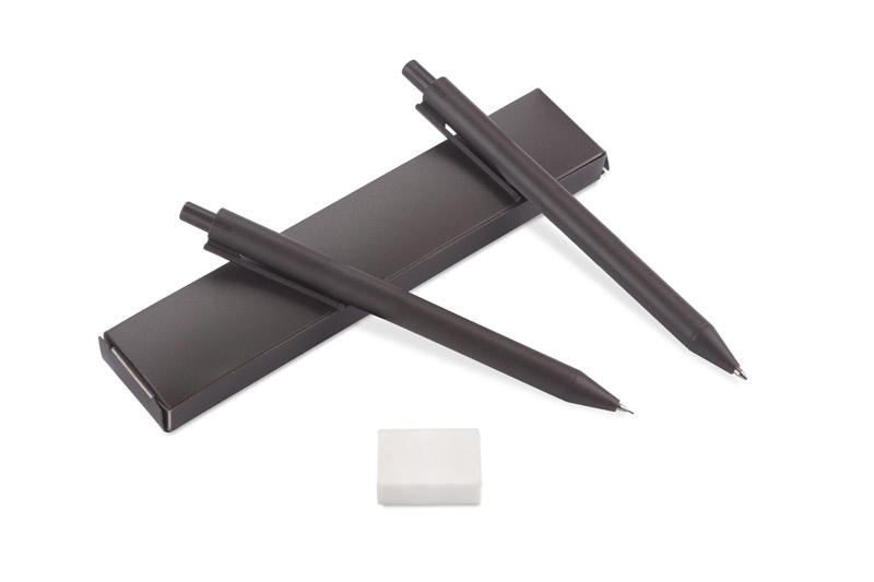 6,29 zł+ 23% VATZestaw KOPIKO składa się z długopisu, ołówka automatycznego oraz linijki wykonanych z tworzywa zawierającego w składzie ziarna kawy oraz klasycznej gumki do mazania. Wymiary produktu: 141 x ⌀ 10 mm (długopis); 142 x ⌀ 10 (ołówek); 165 x 34 x 13 mm (etui), 160 x 30 x 0,6 mm (linijka)
